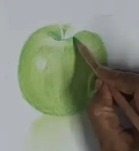This lush green apple drawing, created with watercolor pencils, captures the fruit’s crisp freshness and natural vibrancy. Soft, blended strokes bring out the subtle variations in green, from deep emerald to bright lime, adding depth and realism. Gentle highlights reflect the apple’s smooth, glossy surface, while delicate shading enhances its roundness. The rich hues and fine textures make this piece a celebration of simplicity, freshness, and the beauty of nature. 🍏✨